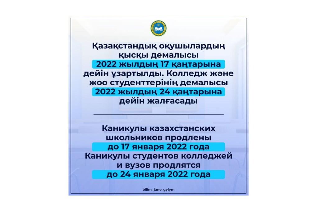 Білім алушылардың 2 тоқсан соңындағы қысқы демалысы ұзартылды